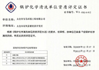已經獲得最嚴格的法國AFAQ-EAQA ISO9001、ISO14001、OHSAS18001認證,取得電廠鍋爐化學清洗A級資質。